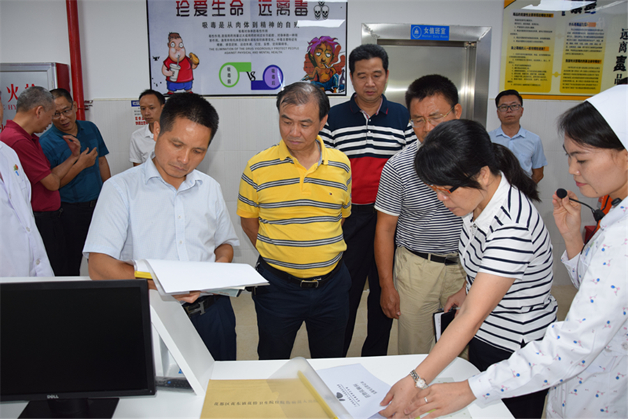 考察组一行实地参观了我区花东镇花侨医院病残吸毒人员收治病区,就我区创新实践的“政府主导、财政负责保障、公安负责安全监管、卫健负责疾病治疗、民政负责困难救助、人社负责医疗保险”人妻 模式进行深入了解交流。