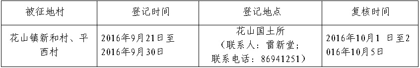 五、被征收土地四至范围内的土地所有权人、使用权人在本公告规定的期限内,持土地权属证书或其他有关证明材料,到指定的地点办理征地补偿登记,请互相转告。