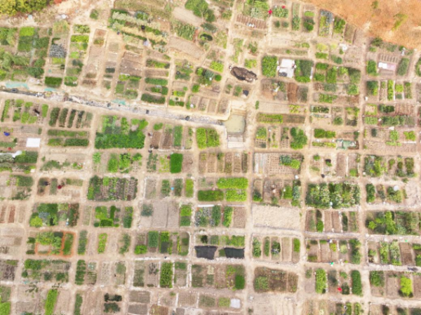 该地块原为政府已征收但闲置撂荒的土地,现场杂草丛生,且夏季积水滋生蚊虫,小区居民改造呼声强烈。为此,在广州市规划和自然资源局人妻 区分局与花山镇政府及热橙社区等多方协作下,短短数月内,约4.5亩荒地完成平整复耕,划分出标准化菜园(每块3米×7米)139块,并以抽签形式免费提供给社区居民种植,既满足居民种菜需求,又助力耕地保护与生态修复,解决了热橙小区及洛场村人居环境问题。