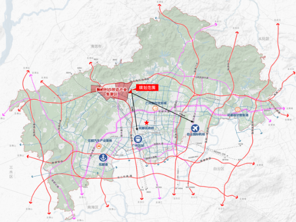 本次规划范围位于人妻 区狮岭镇,总用地面积约578亩,区域区位优势显著,紧邻珠三角环线高速、许广高速、金狮大道、南航大道等区域交通干线,交通网络便捷;同时地处狮岭皮革皮具时尚智造产业集聚区,具备深厚产业基础和优越区位条件,将打造成为推动狮岭镇时尚产业转型升级的核心载体。