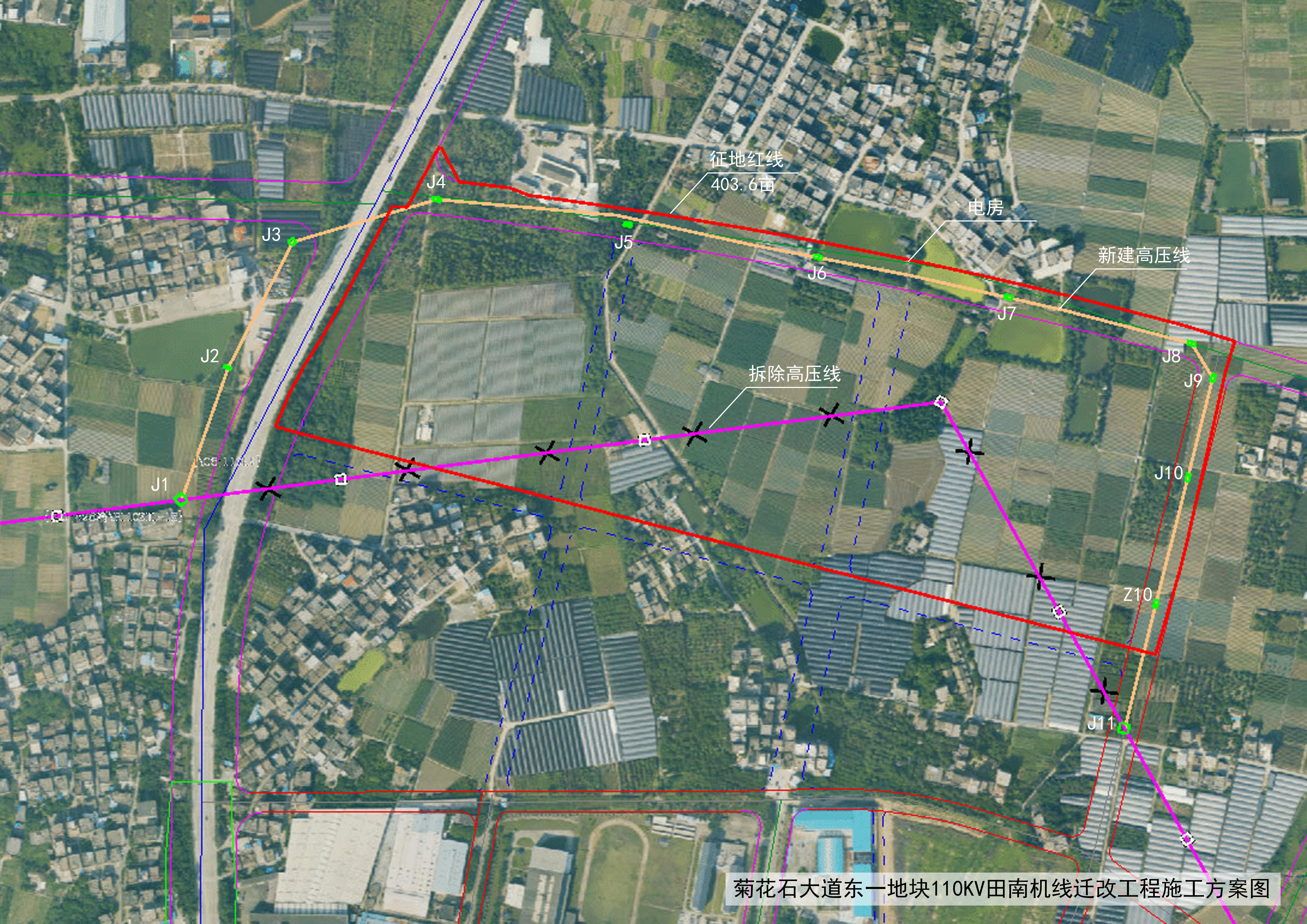 附件:菊花石大道东一地块110KV田南机线迁改工程施工方案卫星图.jpg